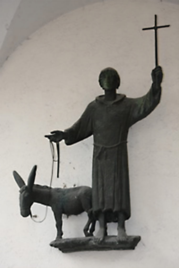Schon damals gab es am Eingang die steinerne Figur des Seligen Winthirs (Neuhausens Dorfheiliger, der sich als Wanderprediger vermutlich um das Jahr 800 an der Winthirkirche niederließ). Symbole für die vier Elemente Feuer, Wasser, Luft und Erde umlaufen die Balkonbrüstung.
